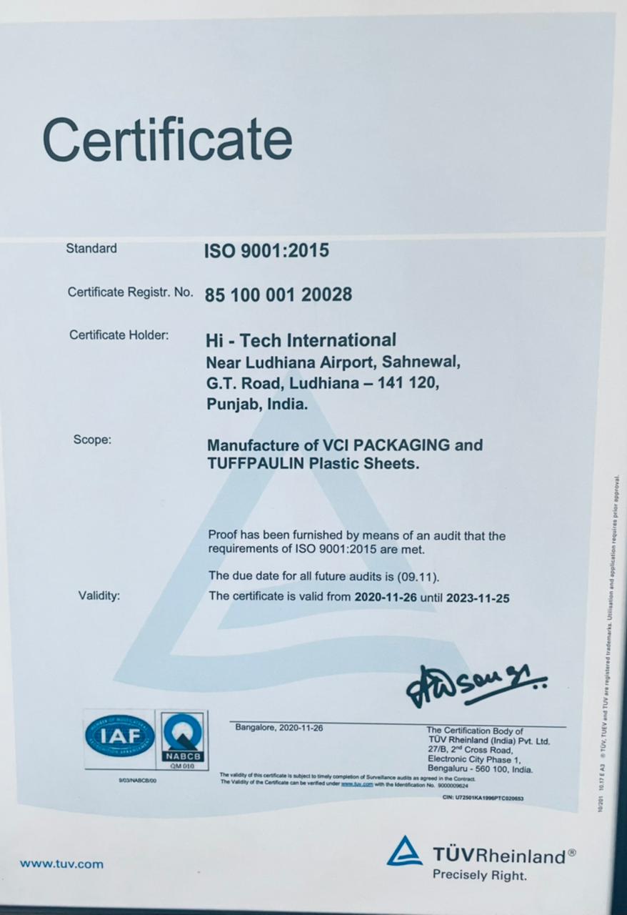 HI-TECH INTERNATIONAL ISO 9001:2015